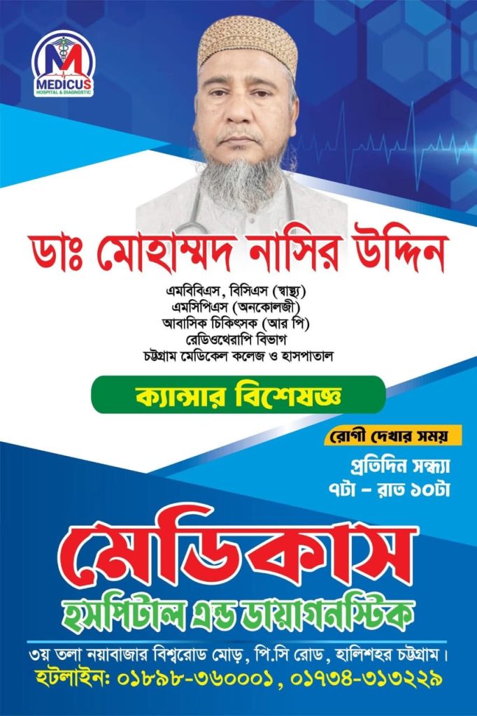 Dr. Mohammad Nasir Uddin is a highly skilled cancer specialist with seven years of experience in the field. He graduated from Sylhet MAG Osmani Medical College in 2000 and later earned his MCPS in Radiotherapy in 2015. Since then, he has been dedicated to providing cancer treatment at Islami Bank Hospital in Agrabad, Chattogram, where he manages a wide range of cancer cases, excluding leukemia. Currently, Dr. Nasir Uddin serves as a Resident Physician in the Radiotherapy Department of Chittagong Medical College & Hospital, continuing his mission to offer exceptional care to cancer patients.